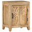 Sideskapet er laget av heltre mangotre, et tropisk løvtre med styrke til å bære vekt. Det tåler også tidens tann, noe som gjør det stabilt og holdbart. Nattbordet har en solid topp for å holde en nattlampe, vekkerklokke eller noe annet du måtte trenge. Dette nattbordet har et stort rom bak døren og gir god plass til å holde mindre gjenstander organisert og innen rekkevidde.