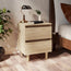 Dette nattbordet med fire treben er stabilt og solid. I tillegg er nattbordet på soverommet utstyrt med to skuffer som gir god lagringsplass for å holde tingene ryddig og organisert. Det er lett å rengjøre med en fuktig klut.