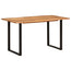 Dette spisebordet er laget av heltre akasie, et tropisk løvtre som er kjent for sin stabilitet og rike korn. Den livlige formen og kantene på bordplaten er behandlet med hensikt, slik at den opprinnelige karakteren og det naturlige inntrykket av tre blir brakt til interiøret! Hvert trinn i prosessen utføres med største omhu, det være seg polering, maling eller lakkering. Stålbenene fullfører det industrielle utseendet og bidrar til den robuste konstruksjonen.