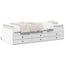 Denne uttrekkbare 2-i-1 dagsengen med skuffer, som fungerer som både sofa og seng, er et praktisk og iøynefallende tillegg til stuen eller soverommet.