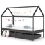 Sengen er smart designet med en ramme formet som et trehus der du kan henge gardiner for å gi barnet mer privatliv. Den kan også brukes som en lesekrok eller et lekehus. Denne sengerammen er laget i heltre furu, og er ekstremt robust og holdbar. De sterke lamellene gir den nødvendige støtten og er svært komfortable. De medfølgende sengeskuffene gir god lagringsplass for oppbevaring av brettede klær, leker osv., slik at rommet blir rent og ryddig. De lettglidende hjulene kan fungere på både teppegulv og tregulv. Denne sengerammen er egnet for en madrass på 90 x 200 cm.