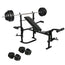 Kommer komplett med en treningsbenk, en vektstang og et par manualer, vil dette hjemmegymsettet hjelpe deg å trene en rekke muskler. Du kan utføre benkpress, leg curls, sit-ups og mange flere øvelser! Justerbar rygg er godt polstret for å gi deg komfort under øvelser. Den treningsbenk kan rett og slett bli reist opp etter bruk, noe som gjør lagring enklere. Med en sterk metallstang, har det ergonomiske manualsettet en totalvekt på 30 kg. Takket være glidefri plasthåndtak, vil våre manualer ikke gli fra hendene dine. Skruefester har stjerneskruer for å sørge for at vektskivene er alltid montert fast på stangen. 16 manualplater er dekket med robust plast, noe som vil redusere irriterende lyder. Med 8 plater for stangen, inkludert stangsettet har en totalvekt på 60 kg. Stjerneformet skruekrager sikrer at vektene sitter på plass.