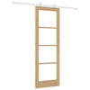 Dette skyvedørsettet gir et moderne preg til ethvert rom. Det ser bra ut samtidig som det er praktisk. Laget av naturlig massivt tre med et semi-transparent glasspanel, blander det materialene på en elegant måte, og passer til mange romstiler. Perfekt til stue eller gang, døren glir lett, så den ...