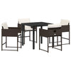Hage Spisegruppe med pute 5 pcs Brun Poly rattan