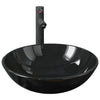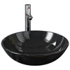 Baderomsvask med kran og trykkavløp svart herdet glass