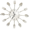 Veggklokke med skje og gaffeldesign sølv 31 cm aluminium