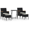 Hagebistrosett 5 deler polyrotting og herdet glass svart