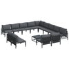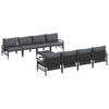 Hagesofa Set med pute 9 pcs Antrasitt Stål & stoff