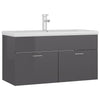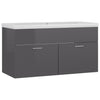 Servantskap med innebygd vask høyglans grå konstruert tre