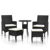 Legg til et snev av moderne stil med dette hagemøbelsett, designet for å utfylle ethvert område, som uteplass, bassengkant, veranda, dekk og balkong. Hagemøbelsettet har en pulverlakkert stålramme pakket med polyrotting, og er slitesterkt. Bordplaten er laget av herdet glass, noe som gjør den enk...