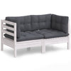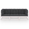 Hagesofa med puter hvit heltre furu