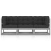 Hagesofa med grå puter 4-seters heltre furu