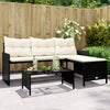 Hagesofa med bord og puter L-formet svart polyrotting