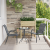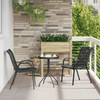 Dette kompakte utendørs spisebordet for to er perfekt for koselige måltider og avslapning. Den stilige, runde designen med elegant svart finish gir et sofistikert preg som passer til ethvert utendørs sted. Den er lett og stabil, så det er enkelt å flytte det rundt mens du nyter maten. Holdbar de...