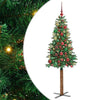 Slim juletre Grønn og hvit 180 cm PVC og Massivt Furu tre