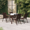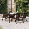 Denne utendørs spisestuen er et godt valg for å spise eller slappe av i uterommet! De pulverlakkerte stålrammene gjør bordet og stolene solide og stabile for daglig utendørs bruk. Takket være den vannavstøtende PE-rottingen er stolene slitesterke og egnet for daglig bruk. Den glatte glassbordpla...