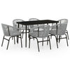 Utendørs spisestue 7 deler bomullstau og stål svart