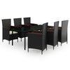 Denne stilige spisestuen er ment å være fokuspunktet i hagen eller på terrassen! Den er et godt valg for utservering eller avslapning! De pulverlakkerte stålrammene gjør bordet og stolene solide og stabile for daglig utendørs bruk. Takket være den vannavstøtende PE-rottingen er stolene enkle å re...