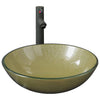 Baderomsvask med kran og trykkavløp gull herdet glass