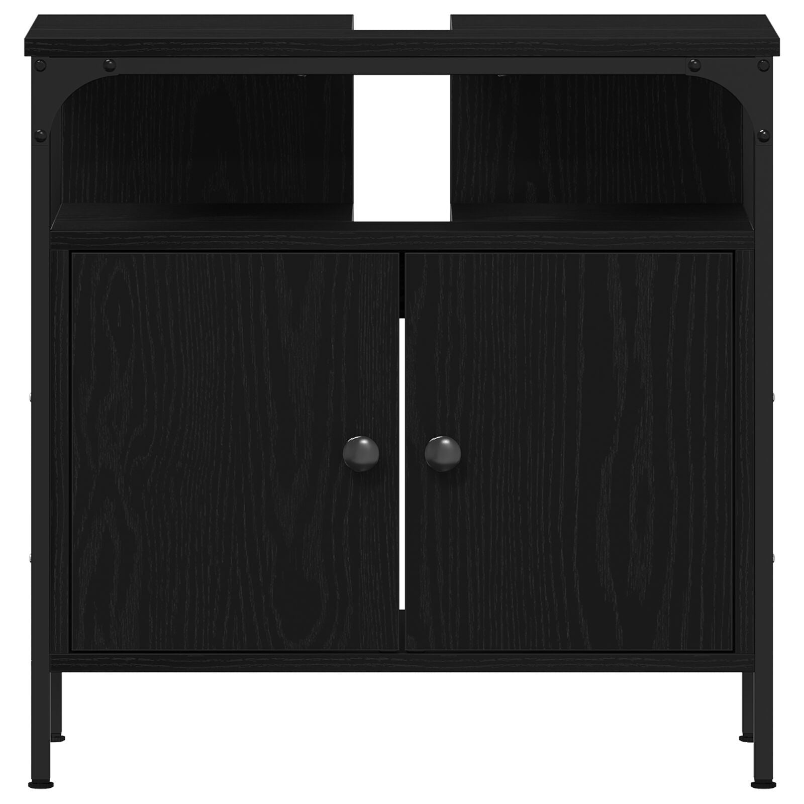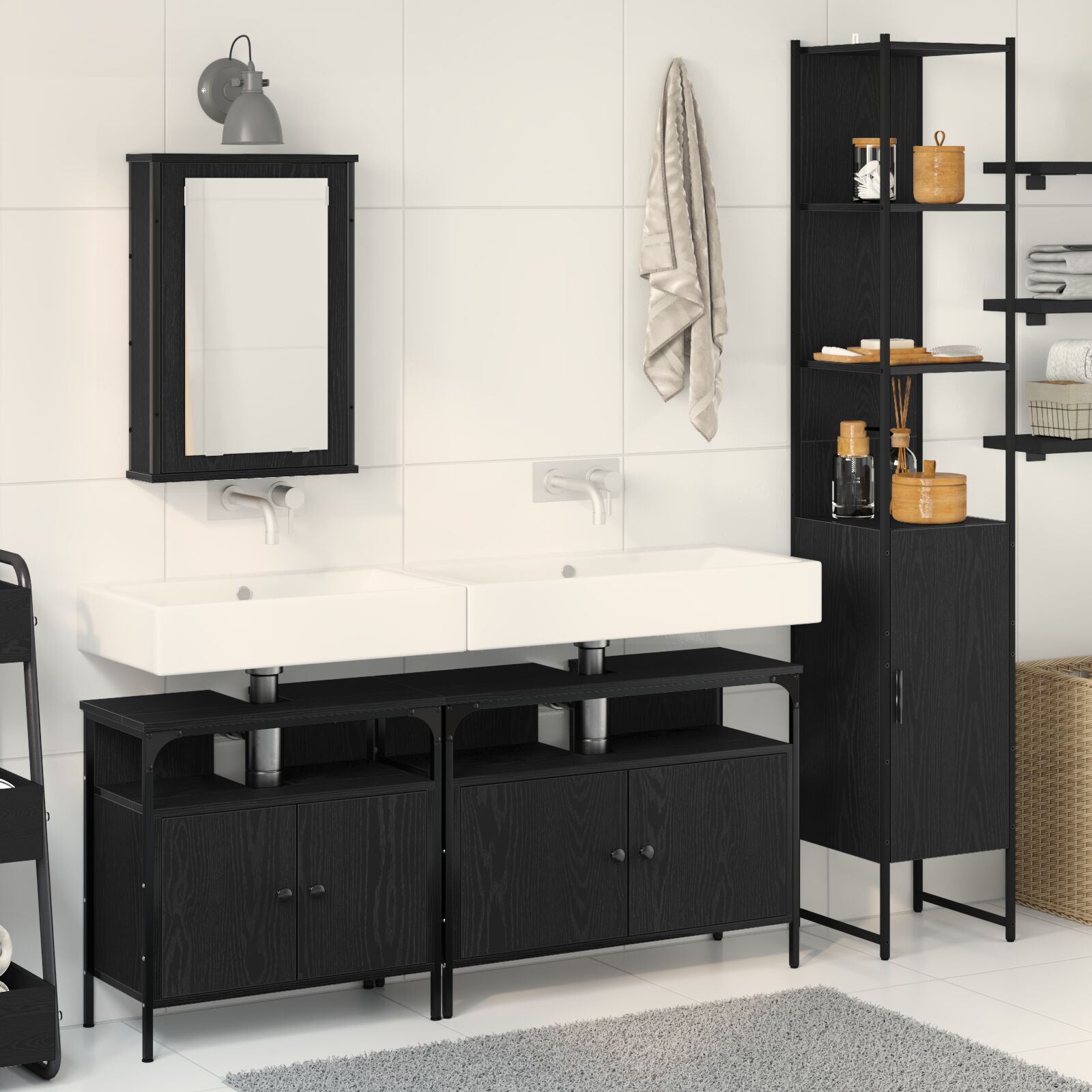 Dette baderomsmøbelsettet kombinerer stil og funksjonalitet. Det passer supert inn i moderne bad. Med sin fine svarte eikefinish og solide konstruksjon, ser det bra ut samtidig som det gir deg masser av lagringsplass.