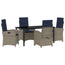 Dette stilige settet med to justerbare hage stoler er laget for å forbedre utendørs moro, med et elegant grått polyrotangvev og trendy marineblå puter. De er den perfekte kombinasjonen av stil og komfort, og et flott tillegg til enhver balkong, terrasse eller hage.