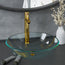 Denne sirkulære baderomsvasken med kran og trykkavløp er designet for å sitte på benkeplaten og være et blikkfang med sin unike stil.