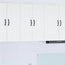 - Materialer: Laget av høykvalitets konstruert tre, kombinerer skapet både styrke og stil. Den hvite matte finishen gir et stilrent uttrykk som glir inn med det eksisterende interiøret. Det solide materialet holder tingene dine trygt på plass, sånn at du alltid kan føle deg trygg ved bruk.
