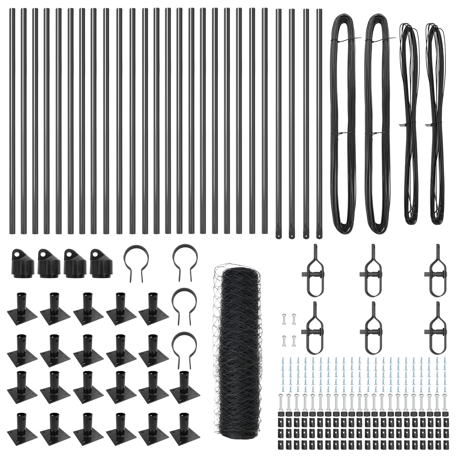 - Komplett kit: Settet inneholder alle nødvendige deler, som metallgjerdepåler, trådnett, portholdere og festeanordninger for enkel installasjon.