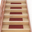 Disse mattene er laget av sterkt, nålestemplet stoff slik at de er lyddempende, sklisikre, varme og komfortable. Mattene kan vaskes og har en kant for å beskytte både trappetrinnsflaten og fremre kant. De klebende prikkene på baksiden gjør at mattene kan festes raskt og enkelt til trappen.