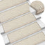 Disse mattene er laget av sterkt stoff med sisal-utseende slik at de er lyddempende, sklisikre, varme og komfortable. Trappeteppene kan vaskes og har en kant for å beskytte både trappetrinnsflaten og fremre kant. Den klebende teipen på baksiden gjør at mattene kan festes raskt og enkelt til trappen.