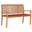 Denne utendørsbenken kan stables for å spare plass når den ikke er i bruk. Den medfølgende puten er mer enn et praktisk tillegg; den har også en dekorativ funksjon.