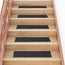 Disse mattene er laget av sterkt, nålestemplet stoff slik at de er lyddempende, sklisikre, varme og komfortable. Mattene kan vaskes og har en kant for å beskytte både trappetrinnsflaten og fremre kant. De klebende prikkene på baksiden gjør at mattene kan festes raskt og enkelt til trappen.
